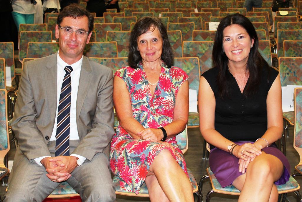 Zunächst erhielten die Schülerinnen und Schüler der Klasse 10c ihre Zeugnisse. Herr Stuch verlas die Namen der Absolventen, Frau Will und die jeweilige Klassenlehrerin bzw. der jeweilige Klassenlehrer gratulierten jeweils. Besonders geehrt wurden in der Klasse 10c für herausragende Leistungen Pascâl Resas und Michelle Seliger für ihr soziales Engagement. Nun hatte die Klasse Gelegenheit sich von ihrer Klassenlehrerin Frau Hermes zu verabschieden.