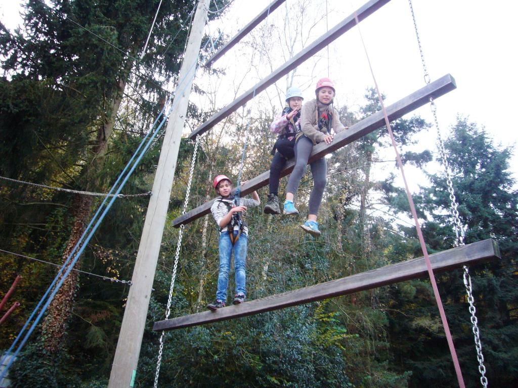 Vor dem Mittagessen konnten wir uns noch kurz ausruhen. Danach blieb nicht viel Zeit für Pause, denn knapp eine Stunde später mussten wir schon am Kletterpark angelangt sein. Nach einer kurzen Kletteranweisung ging es dann auch schon hoch hinaus.