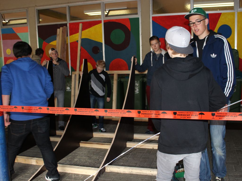 Die Schüler bereiten für Samstag eine Show mit Tricks vor. Dazu bauen sie ihren eigenen Parcour mit Rampen. Der Grundgedanke dieses Projektes kam von dem Schüler Felix Prangenberg, der deutscher Meister im BMX ist. Der Vater von Felix hat sich um das Material und die Sponsoren gekümmert und die Entwürfe für die Jumpbox erstellt. Die Jumpbox besteht aus drei Teilen, die von drei Schülergruppen gebaut und anschließend zusammengefügt wurden. Am Freitag war der Parcours fertiggestellt und die Vorbereitungen für die Show konnten beginnen.