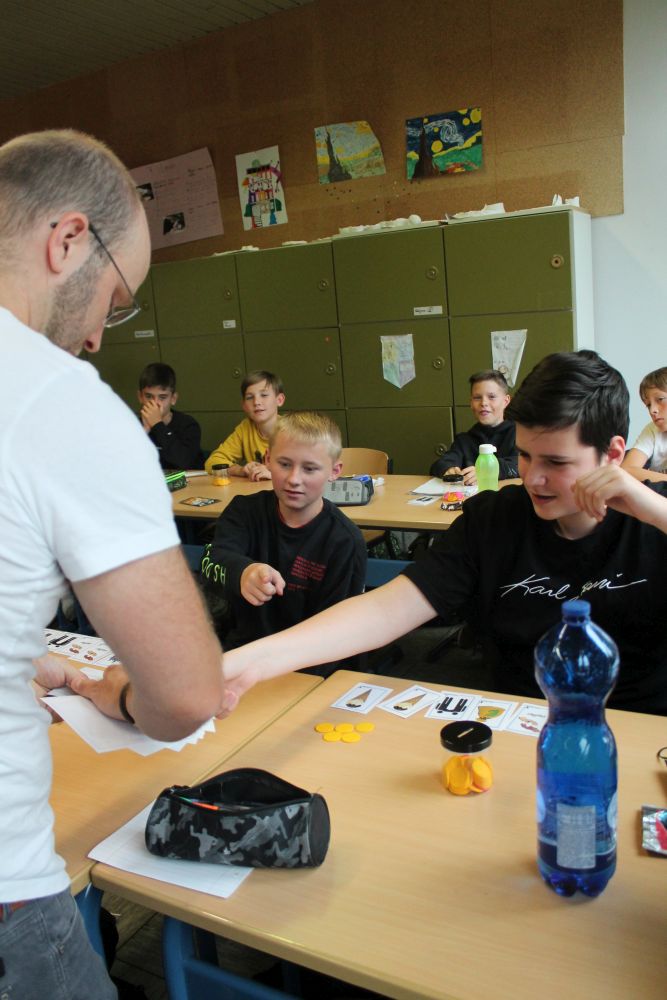 Im weiteren Verlauf erhielten die Schülerinnen und Schüler jeweils 30 Geldmünzen für einen Beispielmonat, welche sie für verschiedene Anlässe ausgeben durften. Sie hatten auch die Möglichkeit, sich Münzen zu verdienen oder ihr Geld zu sparen. Obwohl das Geld in manchen Situationen auch schon einmal knapp wurde, waren doch ganz viele fleißige Sparer dabei.